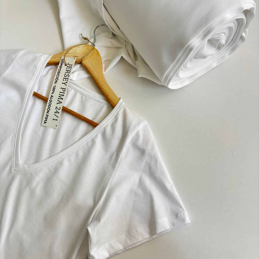 El Jersey Pima 24/1 es una de las telas que desarrollamos en Perú bajo nuestras especificaciones, se caracteriza por ser ancha (1,80 mts de ancho), suave, semi gruesa y fresca.