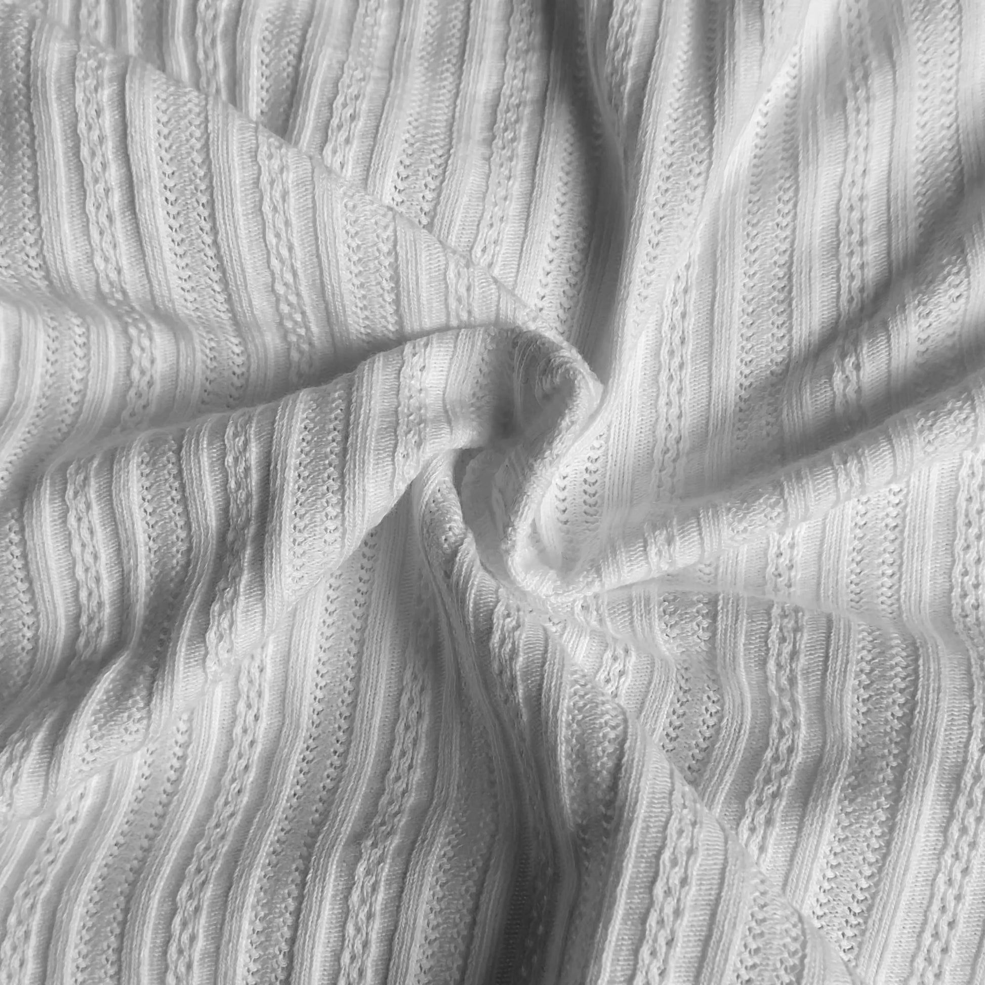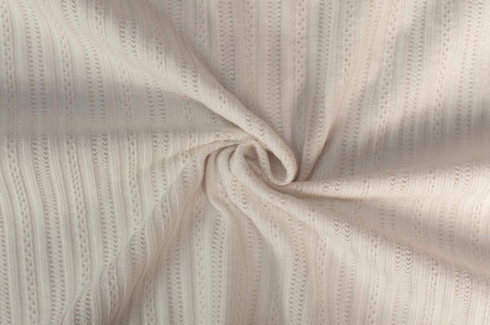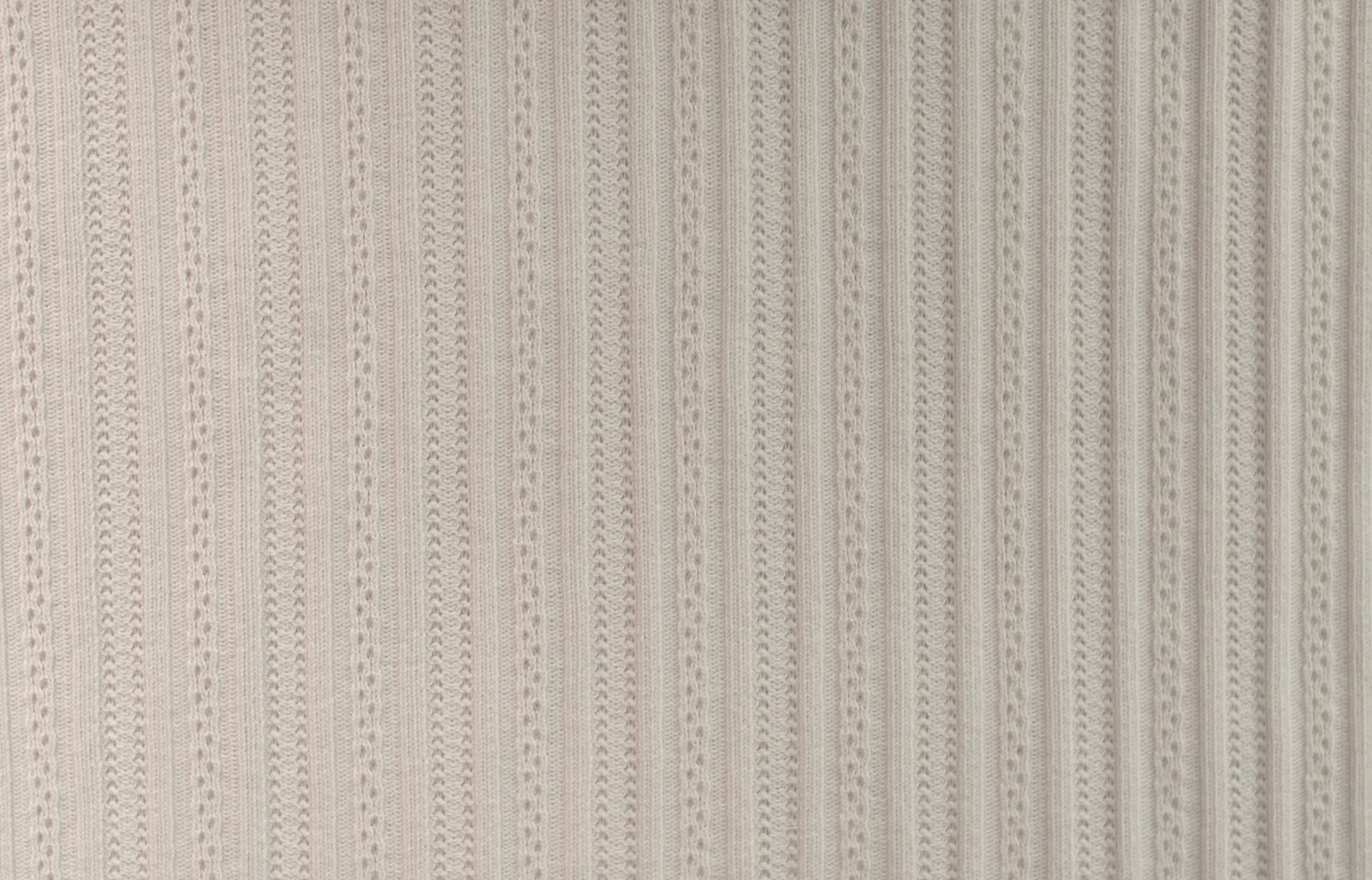Nuestro Rib Textura es una tela de punto de grosor medio delgado 100% de algodón, se caracteriza por el diseño de la trama, la cual ayuda a que se vea delicada, tiene elasticidad, es suave y al ser de algodón no genera irritación en la piel y permite que la piel respire.