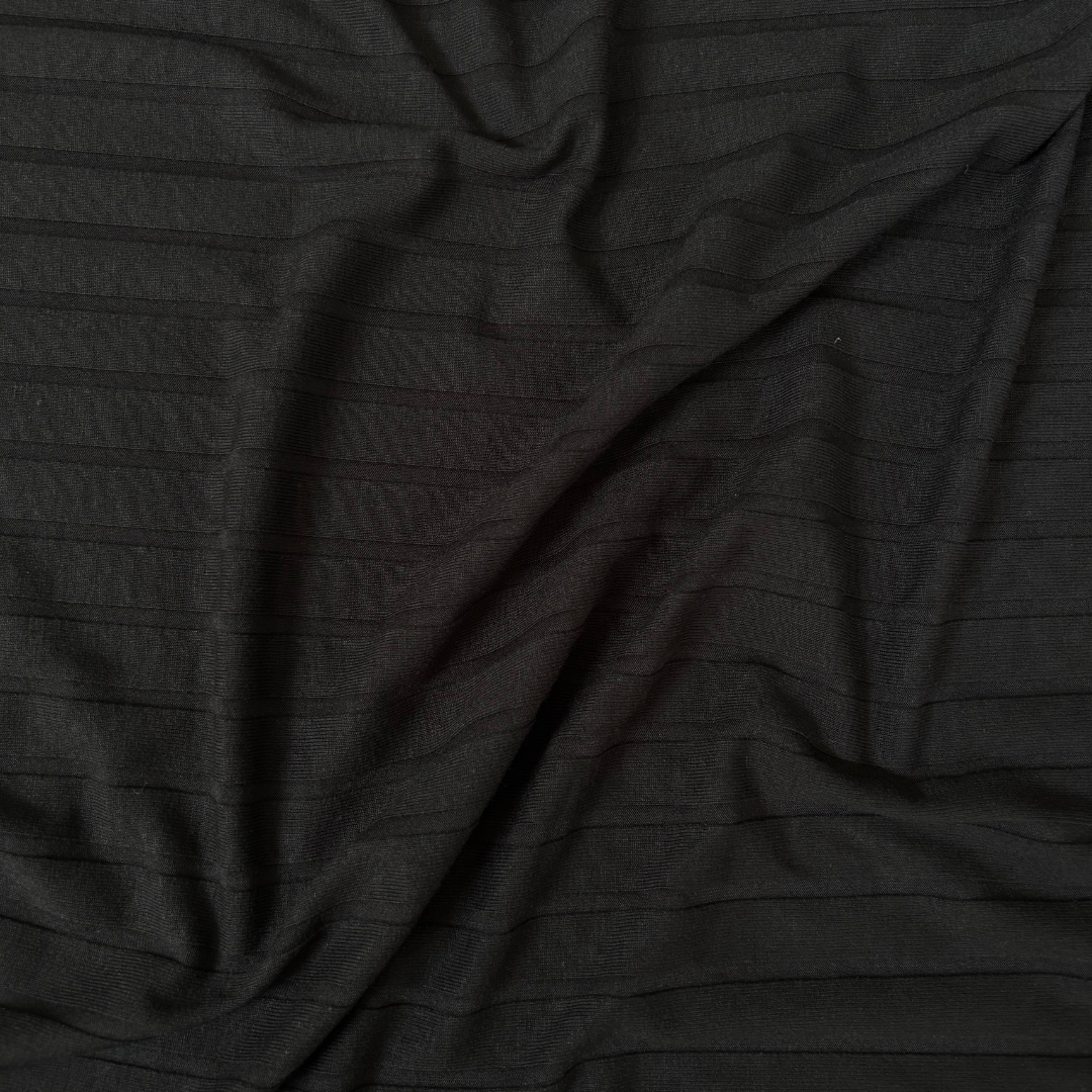 Nuestro Rib Viscosa Canutón es una tela de punto acanalado, mezcla de viscosa con spandex, esta tela se destaca por tener movimiento, buena caída, elasticidad, adaptarse bien al cuerpo, ser suave y tener un leve brillo (característica de la viscosa). Cuidados: